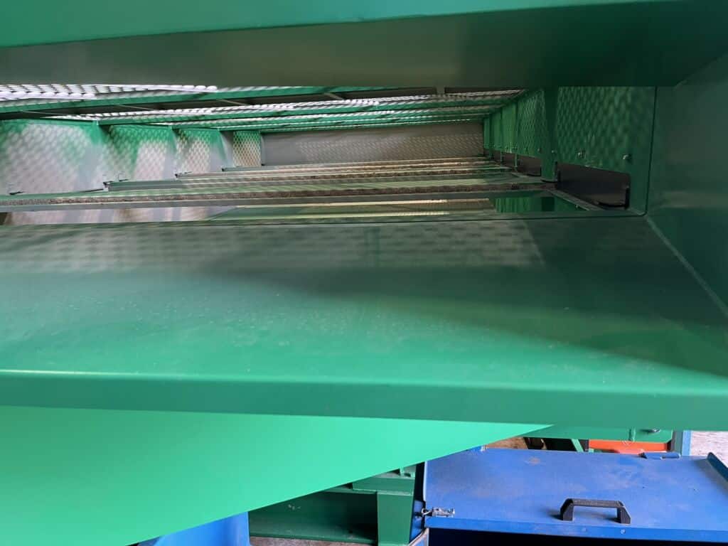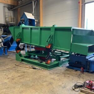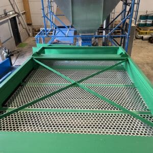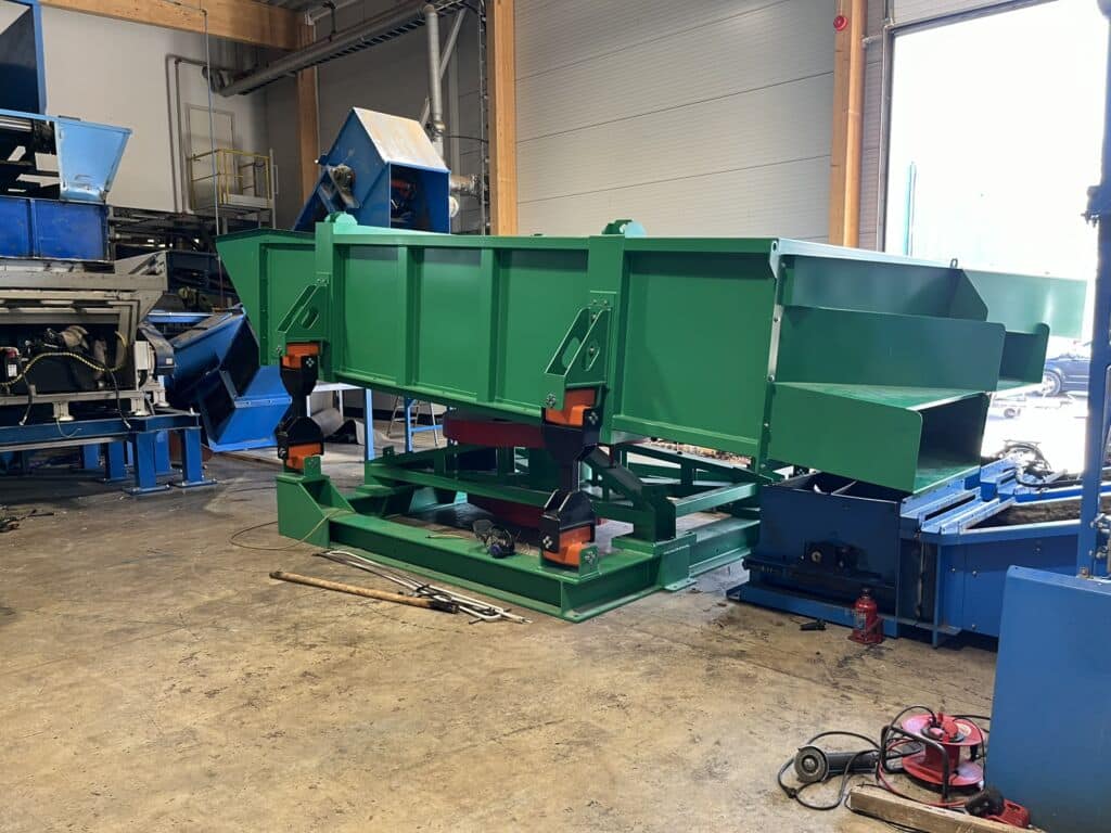 The productivity of the screen is 200m3/h, screening area 13m2. Main motor 11kW. The installed screen separates three chips of different sizes.