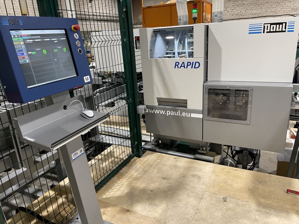 Sawmills. Cross-cutting saws. Optimization-cutting saws. Complete optimization-cutting lines with scanners. Mechanization of complete lines. Special-purpose measuring and scanning devices. Cross-cutting saws for insulation materials. Cross-cutting saws for various board materials (wood, plastic, composite materials). Paul Maschinenfabrik GmbH & Co. / Reinhardt is a well-known German industrial equipment manufacturer. The company has 3 areas of activity: woodworking equipment and lines, production of tensioning devices for concrete prestressing cables and production of steel material storage systems. In the woodworking industry, Paul cross-cutting saws and optimization-cutting saws are well-known as reliable and long-lasting devices. The recent hit is becoming Paul Maschinenfabrik automatic cross-cutting saws equipped with a scanner and precise table positioning device. These solutions are suitable for small and medium-sized companies for cutting more complex/expensive materials (birch, aspen, gray alder, sycamore, oak, beech).