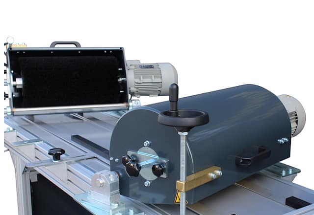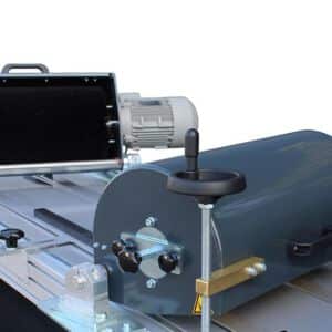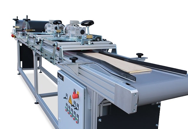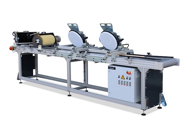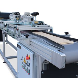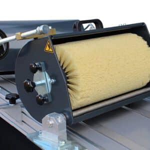 Equipped with polishing units that aid in the evenly spreading and polishing of the applied product into the workpiece surface. Available in various configuration, the shown configuration has two pad units and two brush units. The polishing machine can be used for oxidative oils, UV/LED oils, stains, and hard wax. Due to its modular build, the machine can be equipped with extra pad or brush units.