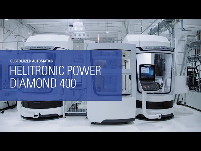 Linking of two HELITRONIC POWER DIAMOND 400 with one robot loader 25. The presented solution enables: