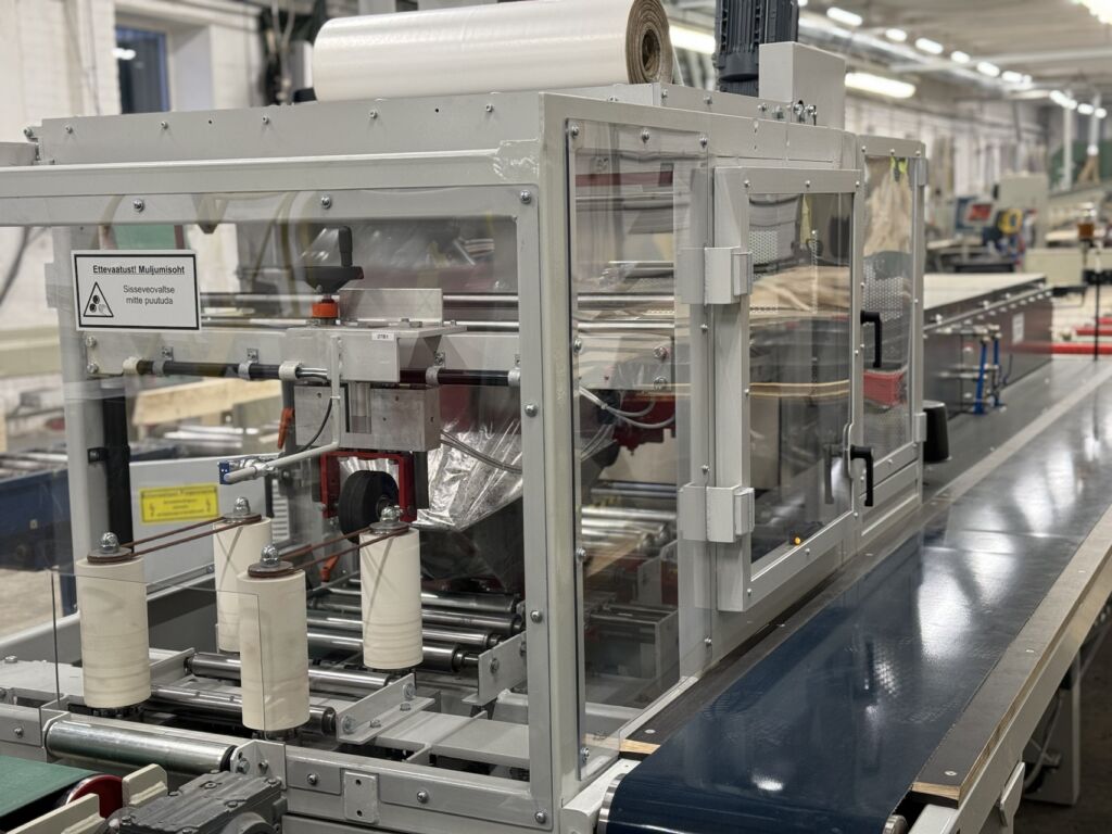 Masina töökiirus kuni V=60m/min. PE kile paksusega 30-60 mirkonit. Masina ühele küljele on ehitatud läbijooksu lintkonveier. Masin on relssidel mis võimaldab masina hööveliinist kõrvale lükata ja kasutada läbijooksulintkonveierit seda juhul kui ei kasutata termokiletust.